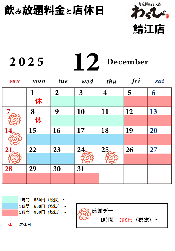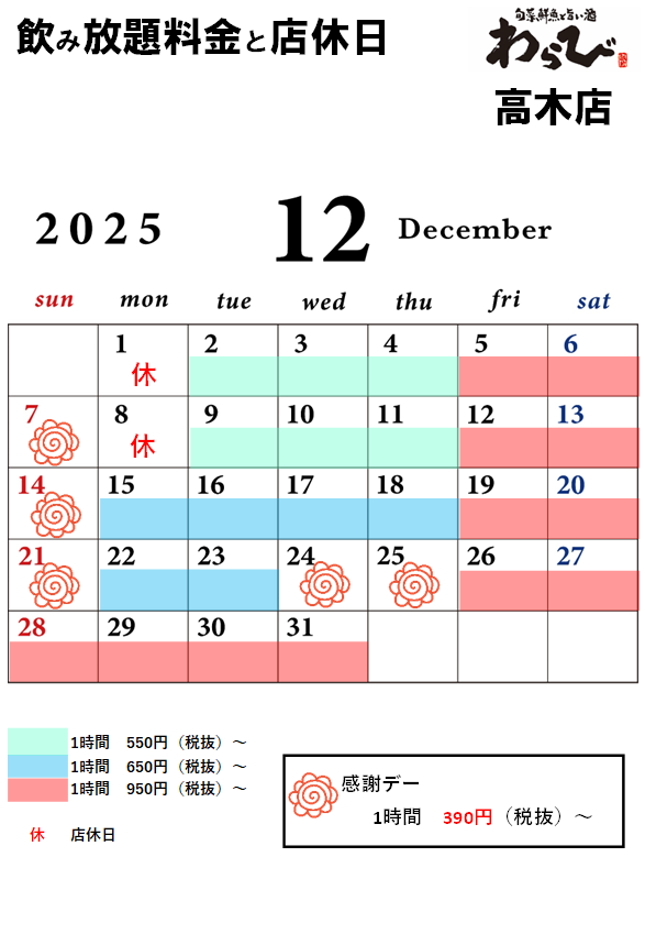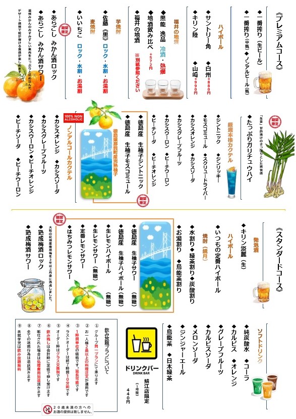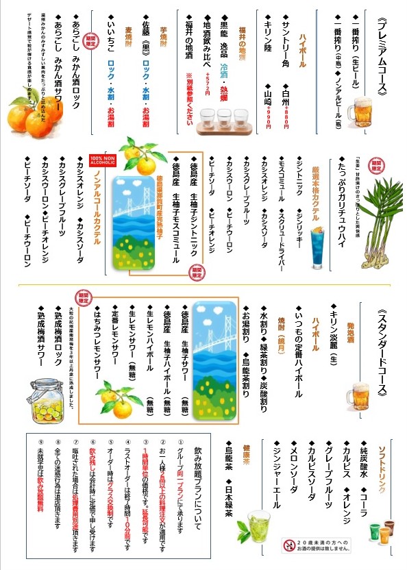◆ゲームや大声等の他のお客様にご迷惑をお掛けする全ての迷惑行為(飲み過ぎによる嘔吐を含む)と判断した場合には清算後退店していただきます。